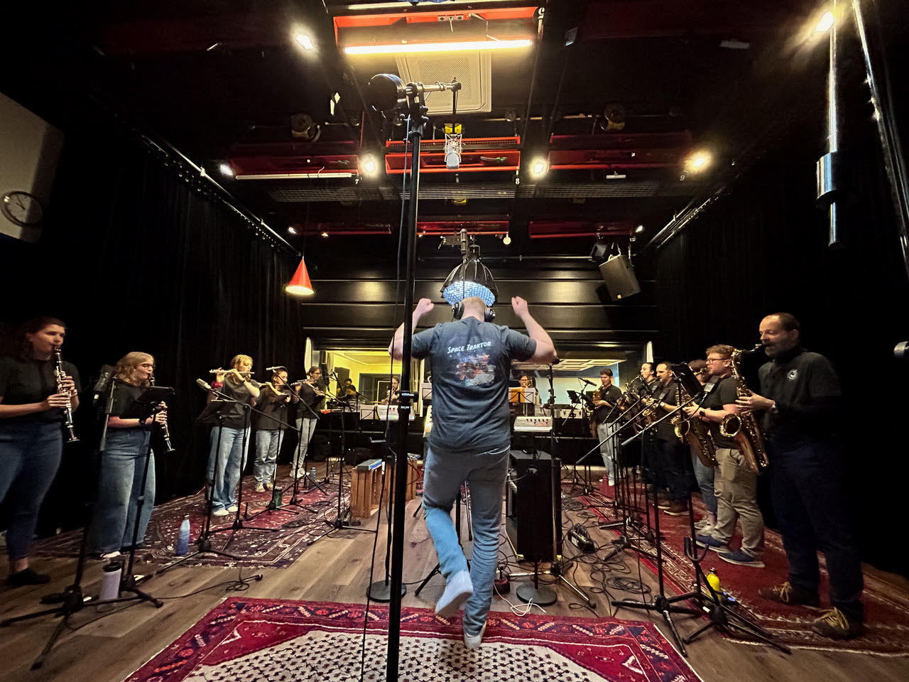 Leitung von Marco Karrer nahmen sie drei eigene Songs auf – für die 20 Musikerinnen und Musiker eine ganz neue und einmalige Erfahrung.