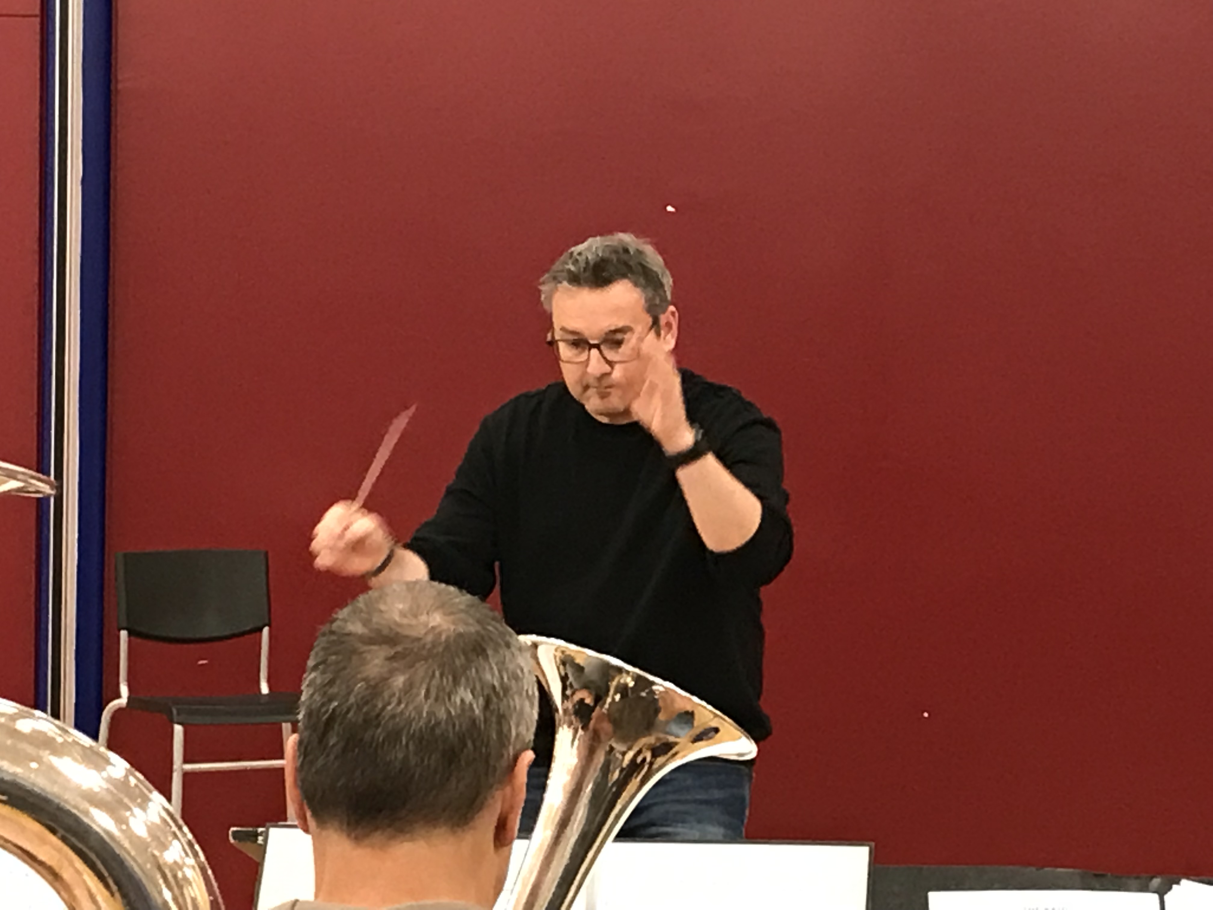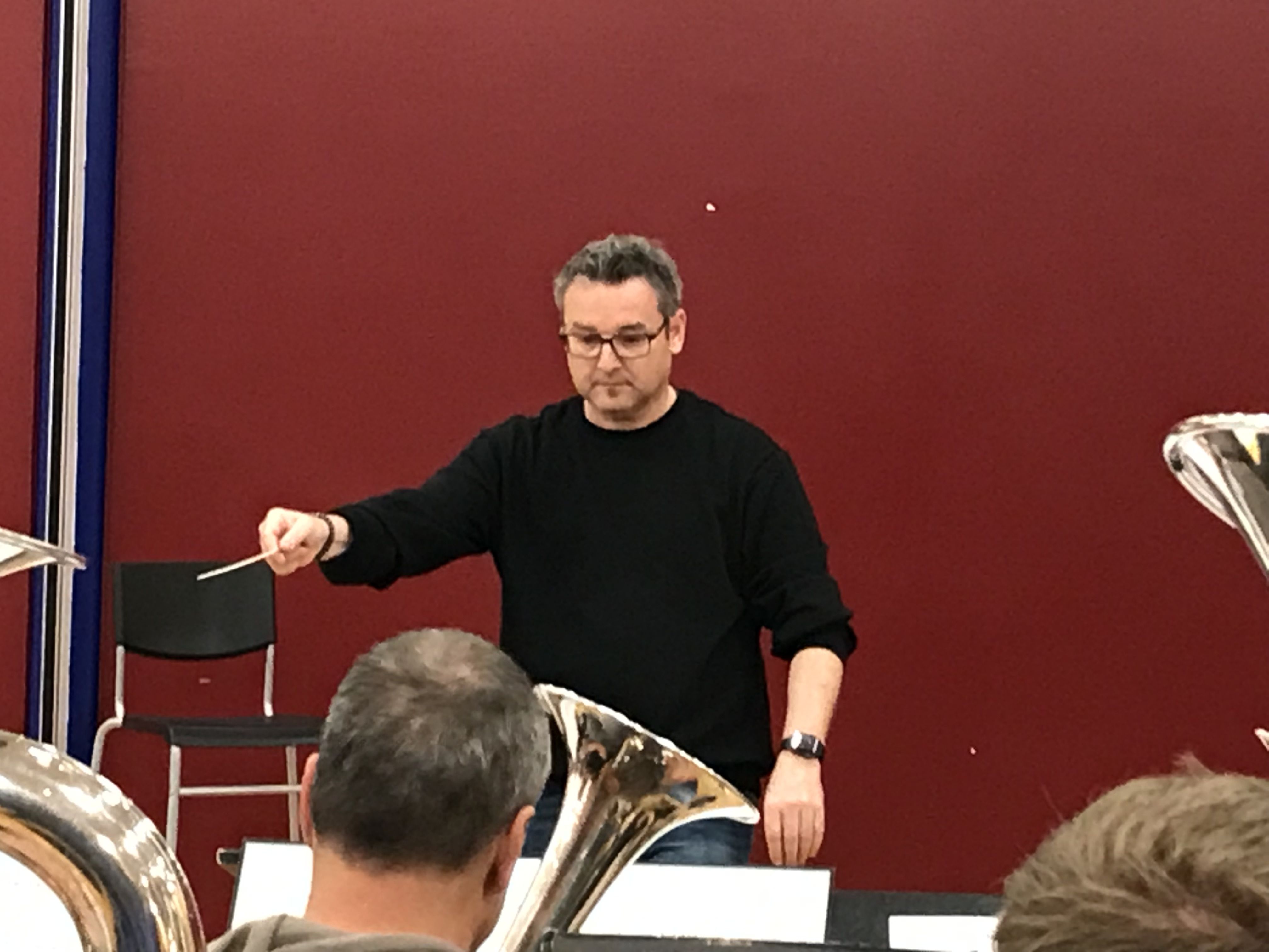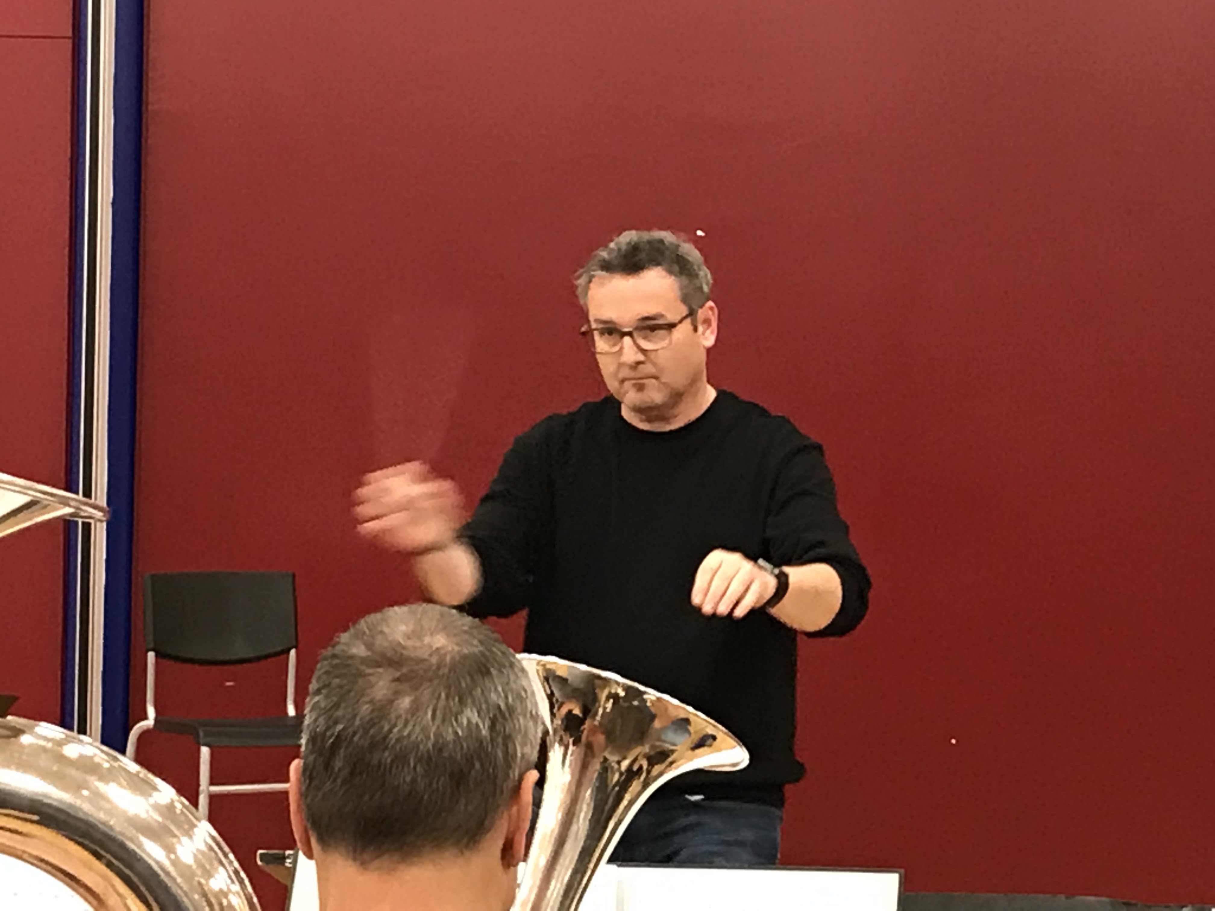Die Probe begann mit Choral 63. Zunächst wurde lange der letzte Akkord ausgehalten – mit dem Ziel, dass das Einspielstück dann vom ersten Moment an gut klingt. Eine andere Übung besteht darin, dass die grossen Instrumente spielen, während die kleinen Luft durch das Instrument pusten. Der Choral wird agogisch ausgereizt – und so erkennt der Dirigent, ob alle Bläserinnen und Bläser bereit sind für eine spannende Probe.