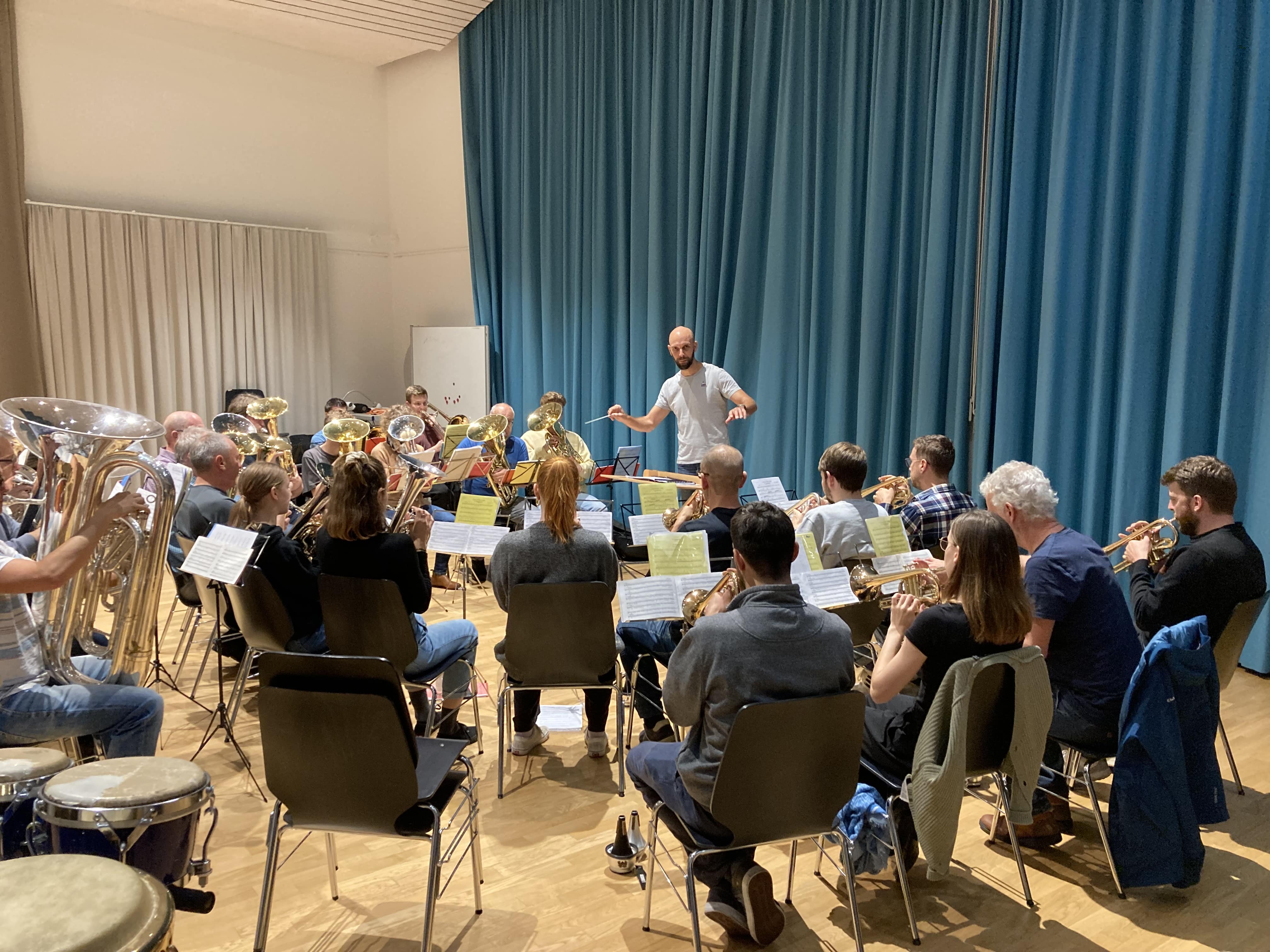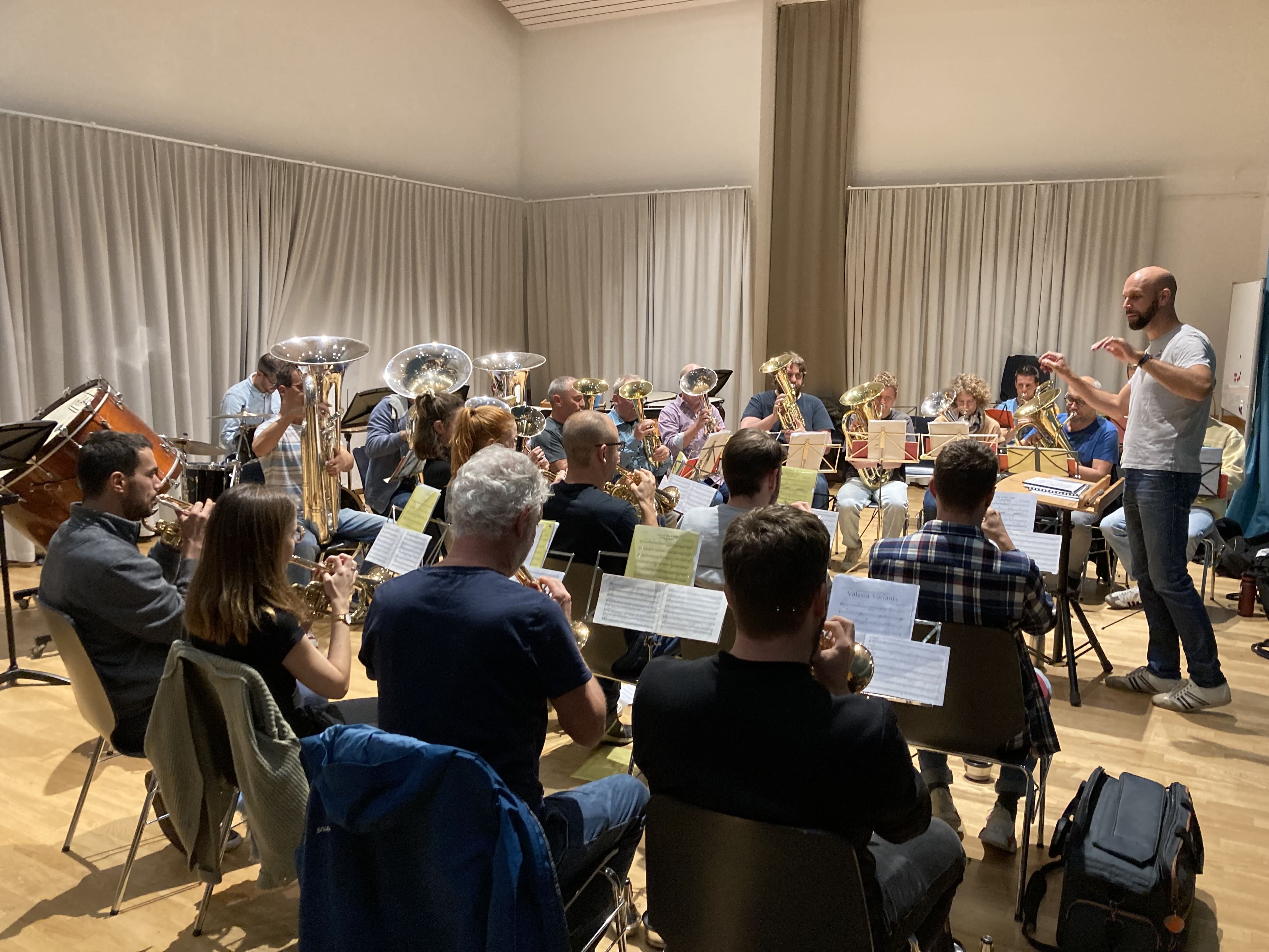 Trotz der super Probedisziplin, bei der kaum ein Wort im Kreis der Musikantinnen und Musikanten gewechselt worden ist - es sei denn für eine musikalische Absprache – ist die Stimmung locker gewesen. Man hat gespürt, wie mit Freude und Energie musiziert worden ist und auch der eine oder andere Schwerz hat Platz gehabt, ohne dass darunter die Konzentration gelitten hätte. Der Dirigent hat viel positive Verstärkungen gemacht, motiviert, Vertrauen ausgesprochen, eingeladen, die Stelle noch genauer zu spielen und auch viel gelobt, wenn das Resultat gepasst hat – und das ist sehr häufig so gewesen.